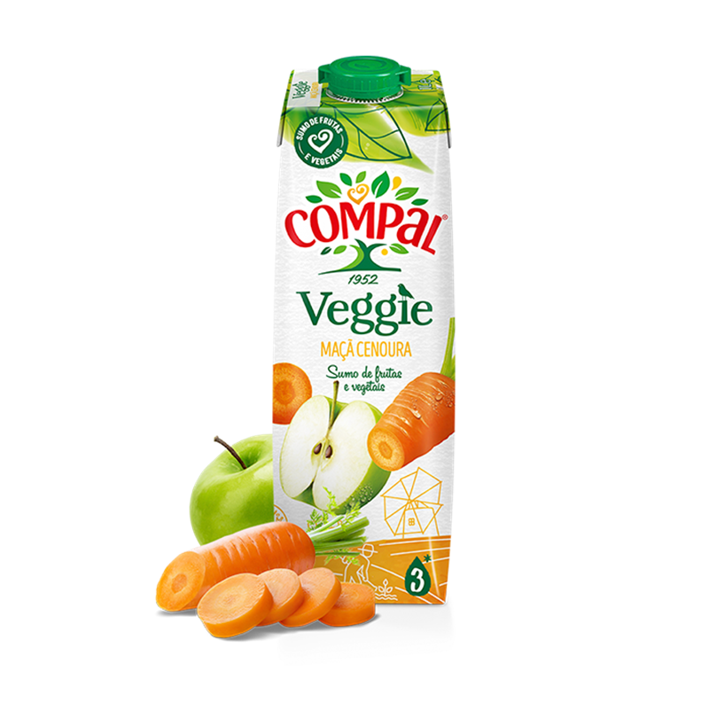 Os sumos maçã e cenoura da Compal são uma explosão de vitalidade e sabor, onde a doçura natural da maçã se une à suavidade da cenoura.